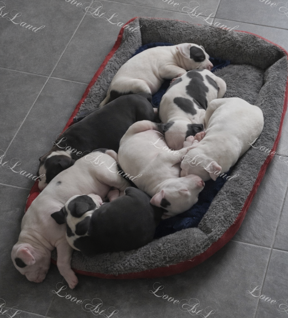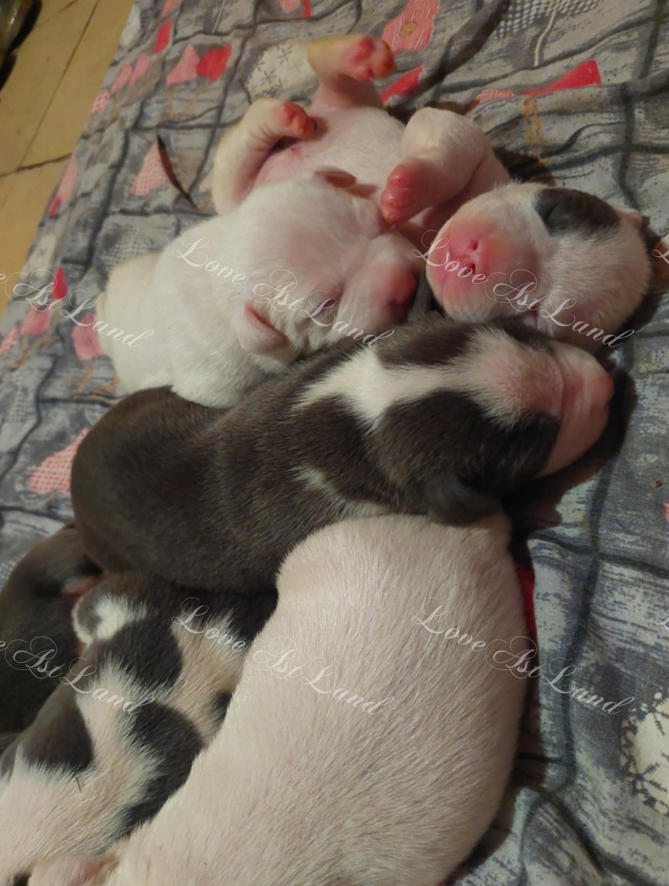 Szczenięta są masywne, duże, o bardzo mocnej budowie, z silnie rozwiniętą kufą i stabilną, proporcjonalną głową. Już teraz widać ich świetny potencjał oraz bardzo harmonijną konstrukcję.